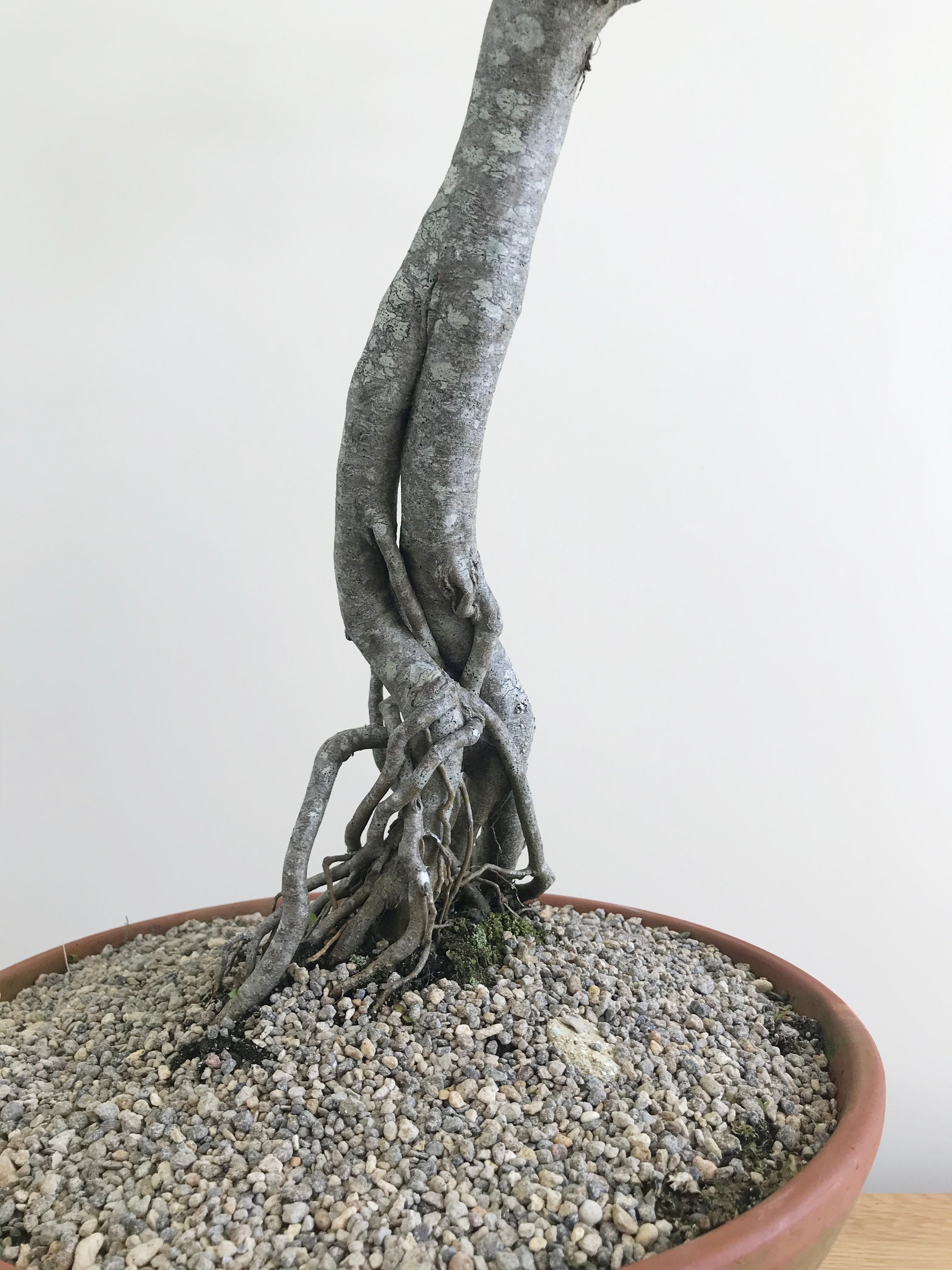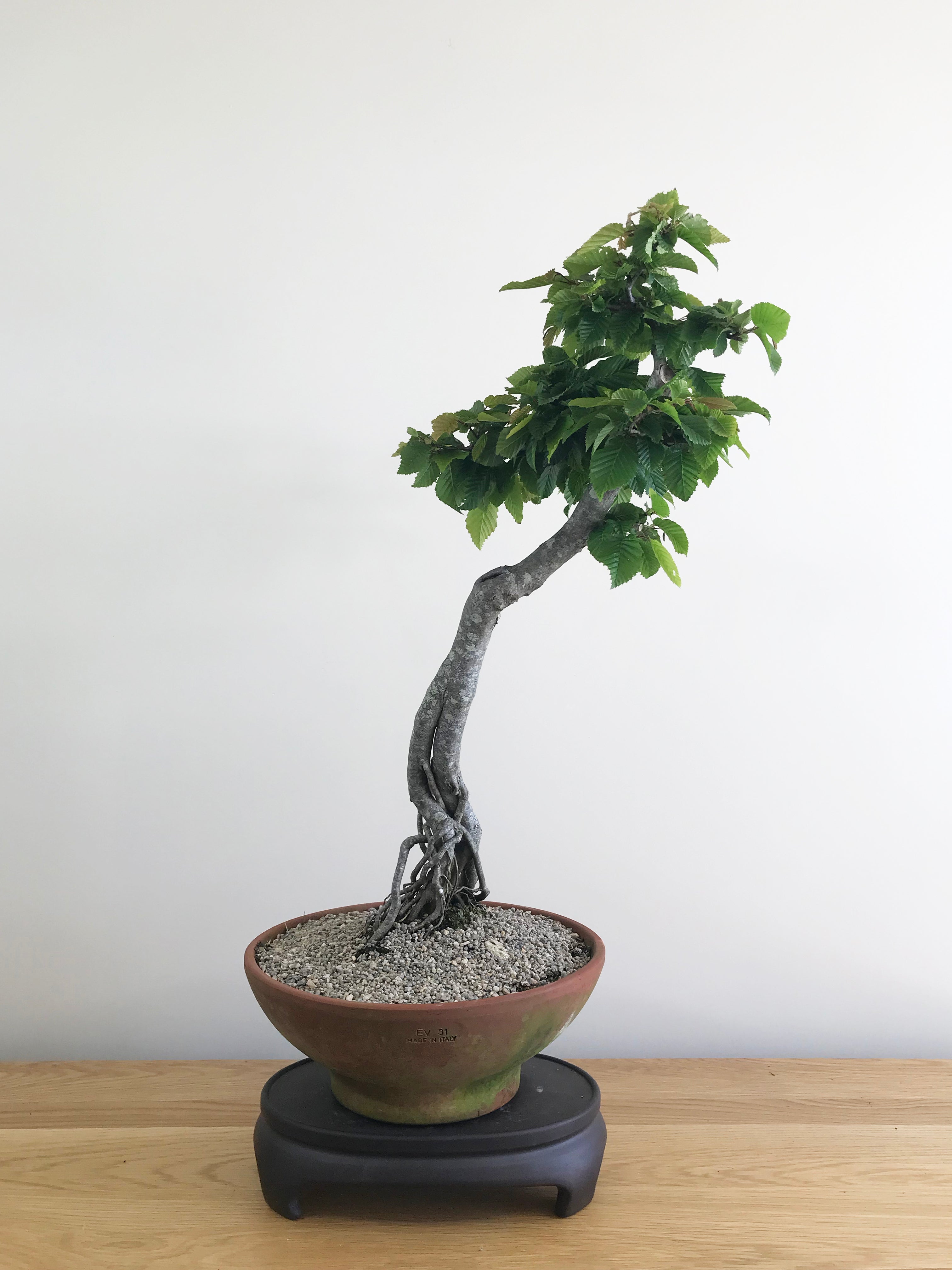 This Literati English Hornbeam is undoubtedly one in a thousand with unique trunk structure and multi spreading roots. Interesting patches development on old bark. Soft elegant twists in body of the tree. Raised in an antique unglazed terracotta pot, Made in Italy. If you are a deciduous lover, you must add this to your premium collection.